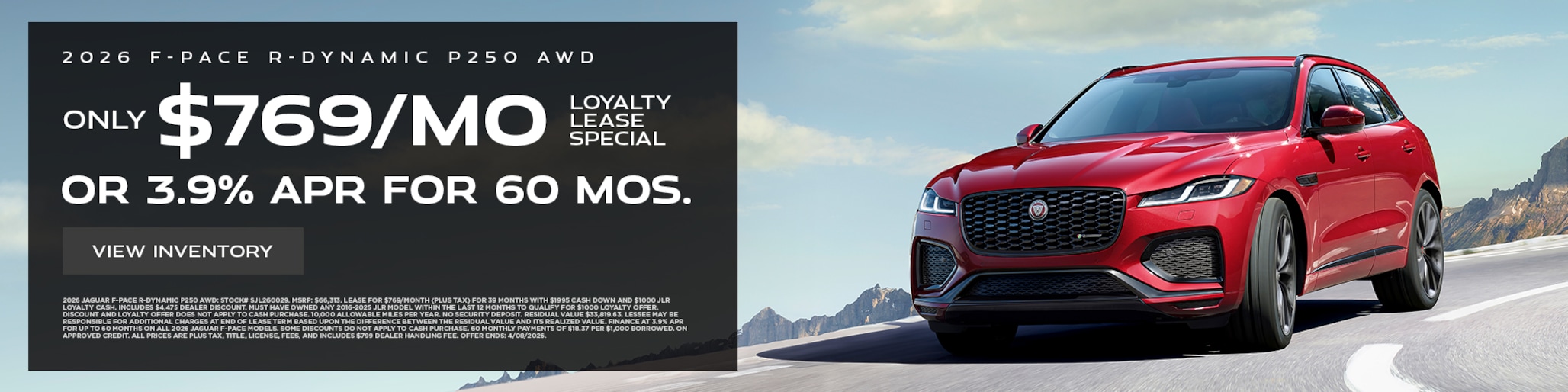 The Jaguar F-PACE is a astonishing car and one of our best selling models. The F-PACE is both a customer favorite and a winner with critics. Its charming and trailblazing design connected with cutting edge technology make the Jaguar F-PACE a exceptional car. One additional reason why Jaguar F-PACE is highly sought after is because it's very dependable and can be upgraded with a wide range of interior and exterior options absolutely tailored to fulfill your needs. Whether you pick to buy or lease your next Jaguar F-PACE, our knowledgeable team will be pleased to help. For more data speak to a product or financial specialist at Jaguar Lakewood.