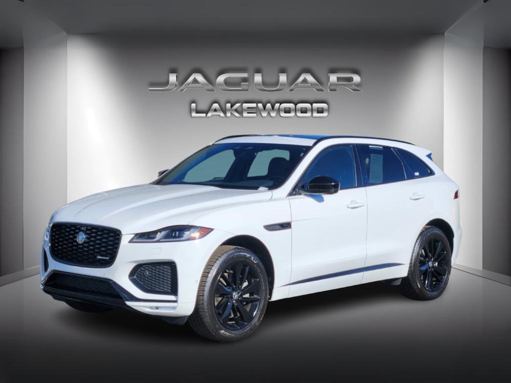 This 2024 Fuji White Jaguar F-PACE P250 AWD is well equipped and includes these features and benefits: 11 Speakers, 20" Wheels, 3.73 Axle Ratio, 4-Wheel Disc Brakes, ABS brakes, Air Conditioning, Alloy wheels, AM/FM radio: SiriusXM, Apple CarPlay/Android Auto, Auto High-beam Headlights, Auto tilt-away steering wheel, Auto-dimming door mirrors, Auto-dimming Rear-View mirror, Automatic temperature control, Brake assist, Bumpers: body-color, Compass, Delay-off headlights, Driver door bin, Driver vanity mirror, Dual front impact airbags, Dual front side impact airbags, Electronic Stability Control, Emergency communication system: Remote SOS Emergency Call, Emergency Pack, Exterior Parking Camera Rear, Four wheel independent suspension, Front anti-roll bar, Front Bucket Seats, Front Center Armrest, Front dual zone A/C, Front Fog Lights, Front reading lights, Fully automatic headlights, Garage door transmitter: HomeLink, Gloss Black Roof Rails, Heated door mirrors, Heated front seats, Heated Front Sport Bucket Seats, Heated steering wheel, Illuminated entry, Leather Shift Knob, Leather steering wheel, Low tire pressure warning, Memory seat, Navigation system: Pivi Pro (Connected Navigation), Occupant sensing airbag, Outside temperature display, Overhead airbag, Overhead console, Panic alarm, Passenger door bin, Passenger vanity mirror, Perforated DuoLeather Seat Trim, Power door mirrors, Power driver seat, Power Liftgate, Power moonroof, Power passenger seat, Power steering, Power windows, Premium Interior Protection Pack (w/o Full Spare), Radio data system, Radio: Meridian 400W Sound System, Rain sensing wipers, Rear anti-roll bar, Rear fog lights, Rear reading lights, Rear seat center armrest, Rear window defroster, Rear window wiper, Remote keyless entry, Security system, Speed control, Speed-sensing steering, Split folding rear seat, Spoiler, Sport steering wheel, Steering wheel memory, Steering wheel mounted audio controls, Tachometer, Telescoping steering wheel, Tilt steering wheel, Traction control, Trip computer, Turn signal indicator mirrors, Variably intermittent wipers, Wheel Protection Pack Black Locks & Lugs, Wheels: 19" Diamond Turned (Style 5103), and Wheels: 20" Gloss Black (Style 1067)